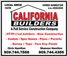 CALIFORNIA BUILDERS & DESIGN INC New Construction & Remodels 9098101140